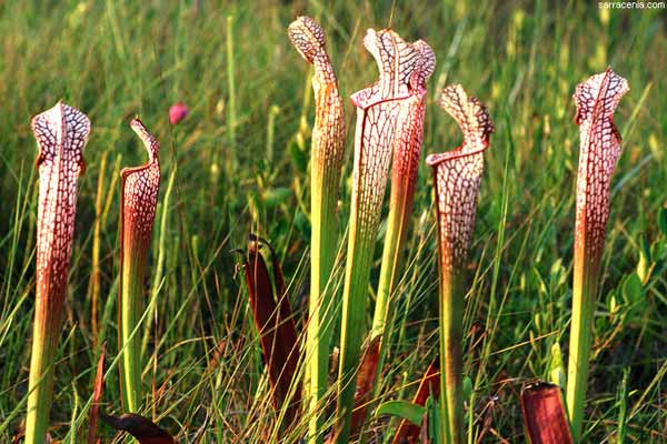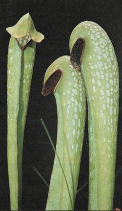 Rostliny obou výše uvedených rodů jsou až na výjimky malé rostliny, což není možné říci o rodu Sarracenia. Tento rod obsahuje osm druhů robustních rostlin, jejichž přeměněné kornoutovité listy -láčky mohou dosahovat výšky přes metr (Sarracenia leucophylia). Láčky jsou na povrchu pokryty kapičkami sladké šťávy, které hmyz „dovedou“ až ke kluzkému obústí láčky a dále dovnitř, kde zvláštní úprava vnitřní stěny láčky zabraňuje úniku hmyzu. Uvnitř je pak kořist opět rozložena. Víčko nad láčkou slouží jako přistávací plocha pro hmyz i jako „deštník“ zabraňující hromadění dešťové vody v láčce.