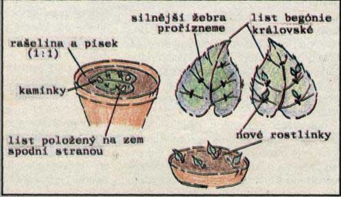 Listovými řízky můžeme množit begónii královskou, usam-barskou fialku, pepřinec, gloxínie aj. Vyzrálý list rostlin prořízneme na několika místech, hlavně u silnějšího žebrování a v místech dělení (větvení). Pak list položíme do kořenáče naplněného jemným říčním pískem s rašelinou (1:1). Aby nedošlo k pohybu listu, zatížíme ho několika kaménky. Zem udržujeme stále vlhkou. Misku je lépe zakrýt sklem nebo umělou hmotou. Osvědčil se i jemný sáček od potravin. Množíme od března do června.