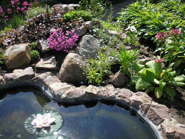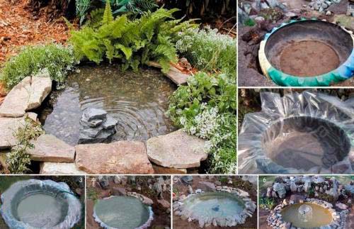 Stavíme-li jezírko z kamenů, klademe je hustě do betonu připraveného v poměru 1 : 5 plochou stranou nahoru. Spáry dobře zalijeme řidším betonem. Volíme kámen světlé barvy, který jezírko zjasní. Stavbu zcela malého jezírka usnadní sud z tvrdého dřeva, betonová skruž apod. Někdy složení dolní vrstvy půdy dovoluje vybudovat jezírko z jílu, který udusáme do hloubky dvaceti až třiceti centimetrů.