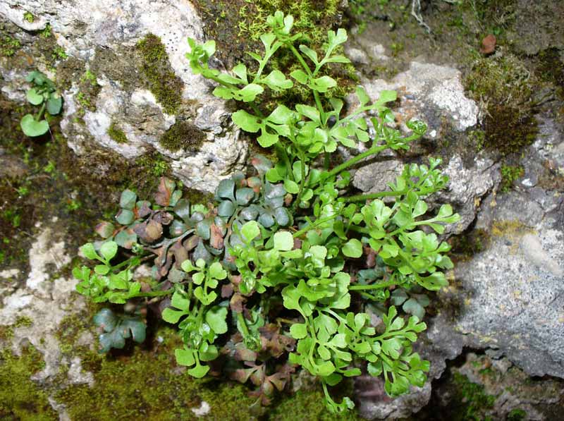 ASPLENIUM ruta muraria (sleziník routička), stálezelený druh vysoký 3-15 cm. Hodí se pro sušší půdu s obsahem vápna a polostín.