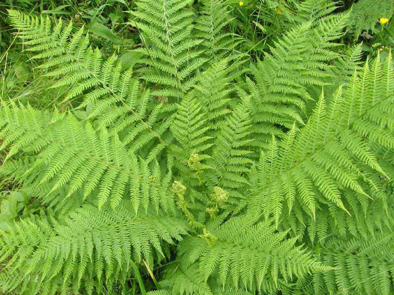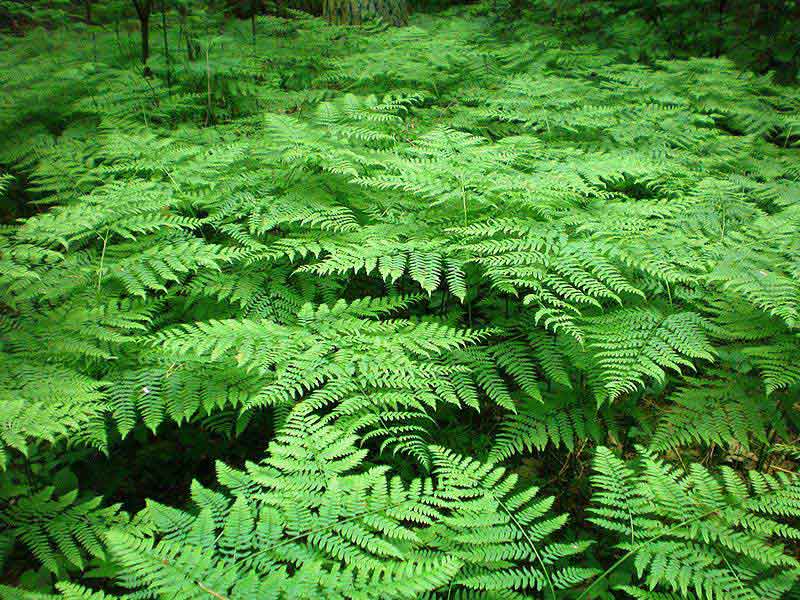 PTERIDIUM aquilinum (hasivka orličí), jeden z největších druhů kapradin (až 2 m), daří se v lesním humusu.