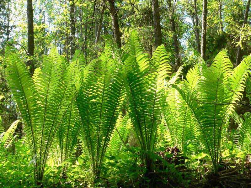 OSMUNDA regalis (podezřen královská), nádherný a poměrně vzácný druh až 150 cm vysoký, vhodný pro vlhčí stanoviště a stín,