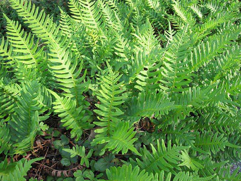 POLYPODIUM vulgare (osladič obecný), pro humózní půdu bez vápna a polos-tinnou polohu, výška 20-40 cm