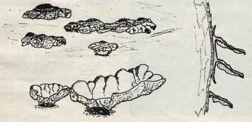 Ne všechny houby, které rostou ze dřeva jsou pro stromy škodlivé. Mnohé mají nižší enzymatickou činnost svého mycelia. Nejsou schopny napadnout živý, zdravý strom a rostou jen z odumřelého dřeva. Tyto houby jsou důležité a užitečné. Svojí rozkladnou činností se starají o koloběh živin. Ovšem ne vždy je v přírodě vše tak jednoznačné. Mnohé dřevní druhy hub normálně žijí na odumřelém dřevě, ale za určitých okolností mohou přejít i k pa-razitizmu. Stačí zdánlivá maličkost, abychom nesprávně odřízli suchou větev, tím vytvořili pahýl, kterému se odborně říká věšák. Ponechali bez ošetření různá poranění, jako jsou například mrazové desky atd. a tak dáme příležitost ke vstupu mnoha infekcí. Na ovocných stromech se tímto způsobem často projevuje pevník chlupatý (Stereum hirsutum (Willd: Fr.) S. F. Graz). Jeho přítomnost snadno poznáme. Na dřevě vytváří tenké kožovité tuhé povlaky, nebo mnohem častěji drobné, do 5 cm velké polokulovité, bokem přirostlé plodničky které jsou většinou střechovitě uspořádané. Barva vrchní strany plodničky je zprvu žlutavo okrová. Zvláště její okraj bývá výrazně živě zbarvený, ale postupně stárnutím přechází do hnědé až šedé, popřípadě může být i zelenavý od řas. Pokožka plodničky je výrazně dlouze chlupatá až štětinatá. Spodní strana je zprvu až žloutkově žlutá, postupně také celá zešedne.
