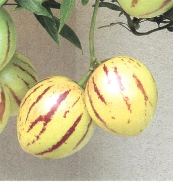 Pod tímto názvem ho asi v prodejnách nenajdete, uchytil se spíše jeho lidový název „pepino“. Český botanický název rostlina nemá. Pěstuje se hlavně v tropech, ale daří se múza určitých podmínek i u nás. Ve svojí domovině to je vytrvalý poléhavý keř, který od báze dřevnatí. Plody jsou vejčité, tenká slupka je světle žlutá s fialovými pásky. Světlá dužnina má chuť podobnou melounu nebo hrušce.