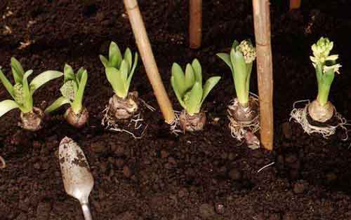 Odkvetlé hyacinty a tulipány, vysázené ve skupinách vyjmeme, jsou-li na místě déle než dva roky. Vyndáváme je, až když jim zaschnou listy.