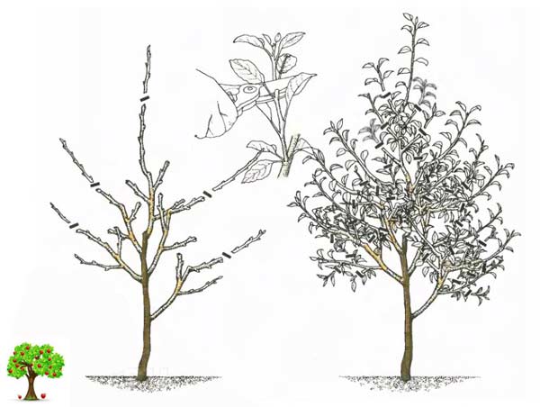 Mladé výsadby, které ještě nevstoupily do plodnosti anebo začínají plodit, ošetřujeme letním řezem minimálně, abychom zachovali co nejvíc zdravé listové plochy. Dlouhé letorosty, s výjimkou jednoznačně konkurenčních, neodřezá-váme ani nezkracujeme, ale podle možností vyvazujeme do vodorovné až převislé polohy pomocí závaží, těžítek nebo speciálními motouzy (tenké dráty obalené papírem), které se po dvou letech zcela rozloží. Toto ohýbání letorostů přiblíží nástup stromů do plodnosti, která přirozeným způsobem omezí jejich růst.