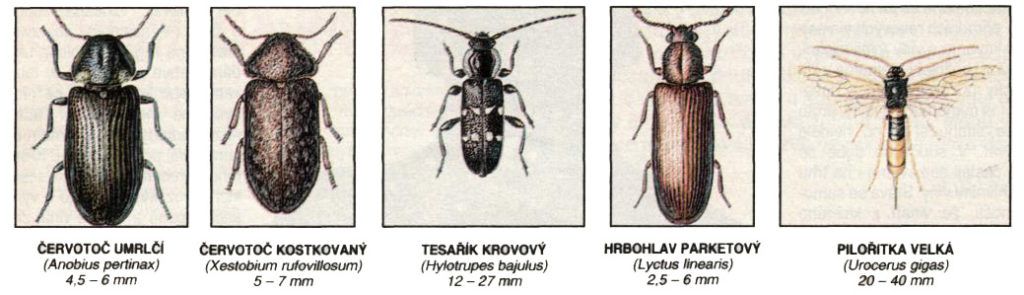 Kůrovci, krasci, pilořitky, většina tesaříků a jiní hmyzí škůdci dřeva kladou vajíčka pouze na surové neodkorněné dřevo. Ve zpracovaném dřevu mohou dokončit vývoj a vylíhnout se v dospělce, ale již nejsou schopni dále se v tomto dřevu rozmnožovat. Nejproblematičtější z nich jsou pilořit-ky, které napadají pokácené nebo mechanicky poškozené jehličnaté stromy. Záludnost škůdce se zvyšuje tím, že napadení nelze objevit dříve než se nalíhnou dospělí jedinci a vytvoří na povrchu dřeva velké kruhové výletové otvory.