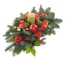 Neumím si představit stůl bez vánoční dekorace se svíčkami. Ke zhotovení budeme potřebovat větvičky jedle, jalovce a janovce, několik větviček mahónie, malý snopek sena nebo slámy, listy břečťanu, šípky, několik menších jablek, burské oříšky, křížaly ze dvou jablek. Dále si připravíme nízkou nádobu o průměru 15-17 cm, kostky oasisu, zlatý drátek, silnější drát, červené svíčky různých délek, zahradnické a obyčejné nůžky.