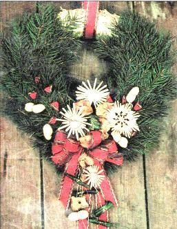 K předvánočnímu a vánočnímu času patří neodlučně voňavá dekorace, kterou v našem případě můžeme zavěsit na zeď do bytu nebo na vchodové dveře u svého domu. Věneček můžeme pověsit již začátkem prosince a tím navodit atmosféru blížících se Vánoc. Pro zhotovení budeme potřebovat slaměný věneček o průměru asi 25 cm, větvičky smrku, jedle nebo jalovce a listy břečťanu. V obchodě s květinami koupíme slaměné ozdoby (hvězdičky) a látkovou stuhu. Dále budeme potřebovat několik burských oříšků a křížaly ze dvou jablek. Z technických pomůcek si připravíme zahradnické a obyčejné nůžky, zlatý drátek a vázací drát. Nejdříve si smrkové větvičky nařežeme na menší části. Ty klademe na slaměný základ (přibližně po čtyřech kusech) a omotáváme drátkem.