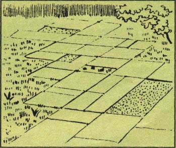 Zakládáme-li zahrádku, důkladně si promyslíme rozčlenění plochy. Jde především o celistvost trávníků a o plochy před chatou, chalupou nebo domem, abychom účelně a úsporně vybudovali cesty. Jejich šířku volíme podle provozu. Rozlišujeme cesty pískované, dlážděné, betonové a asfaltové.